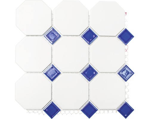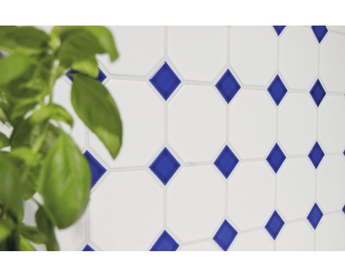Mozaika ceramiczna DUŻY HEXAGON BIAŁY Z NIEBIESKIMI WSTAWKAMI