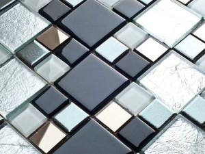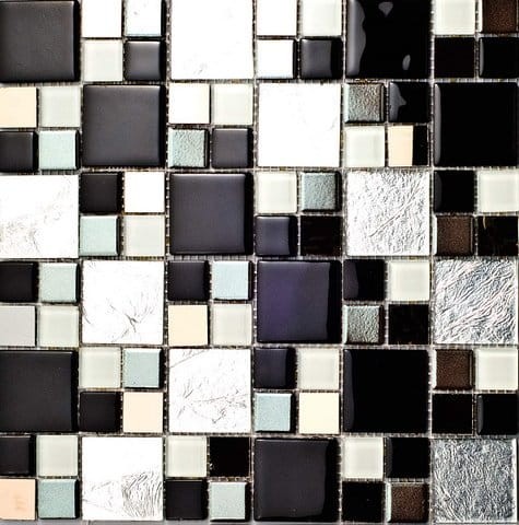 Połączenie mozaik o różnych wymiarach w kolorach srebra czerni i lustra