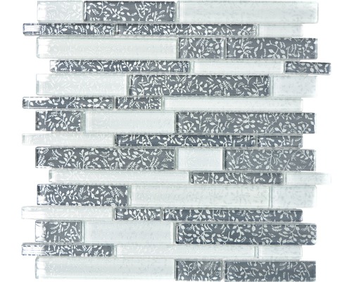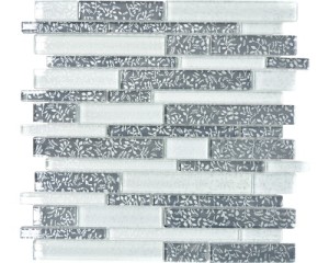 MOZAIKA SZKLANA BIAŁO-SZARA, CEGŁA