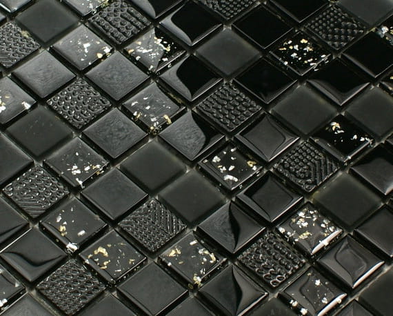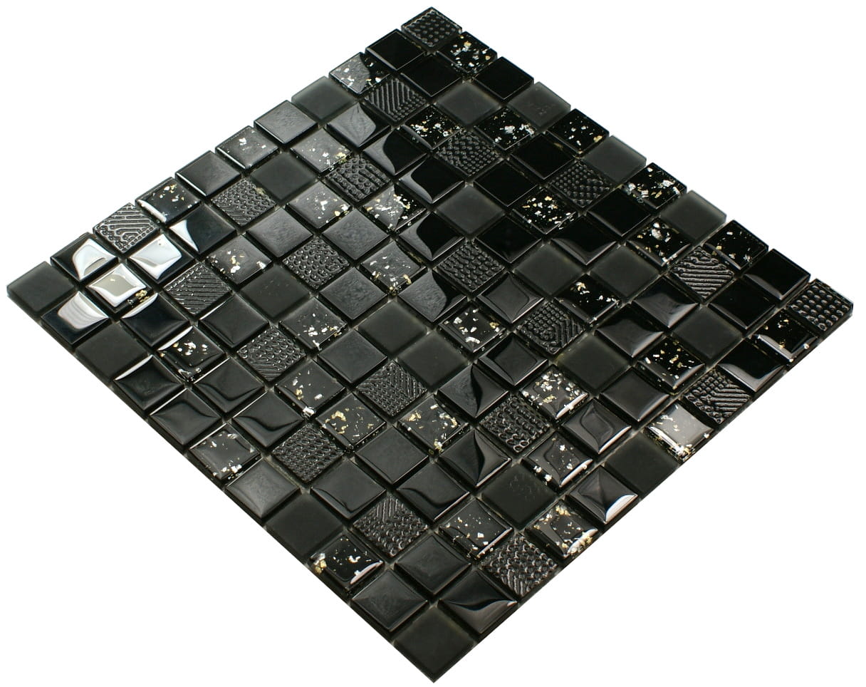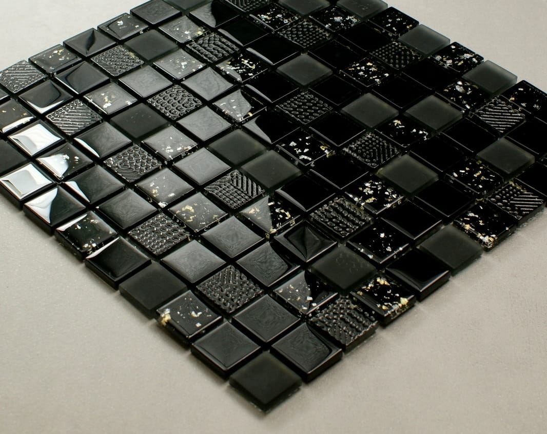 Mozaika szklana czarna z elementami 3d