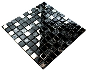 Mozaika szklana czarna srebrna z efektem mrożonego szkła