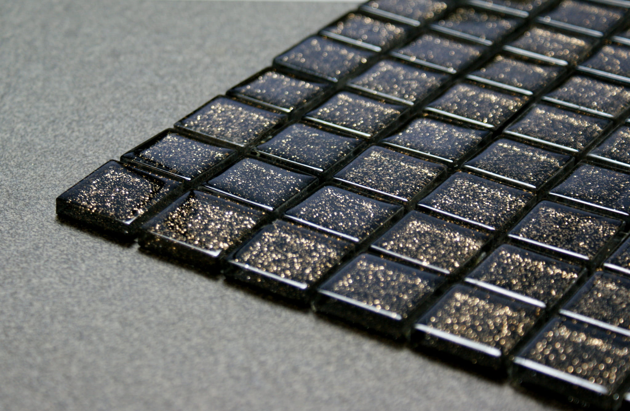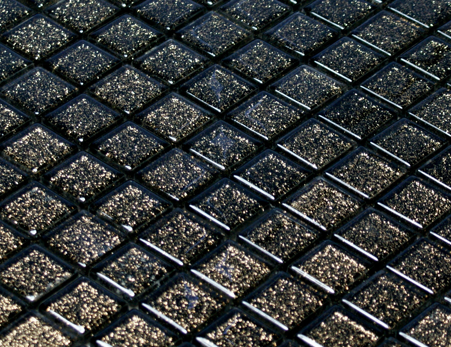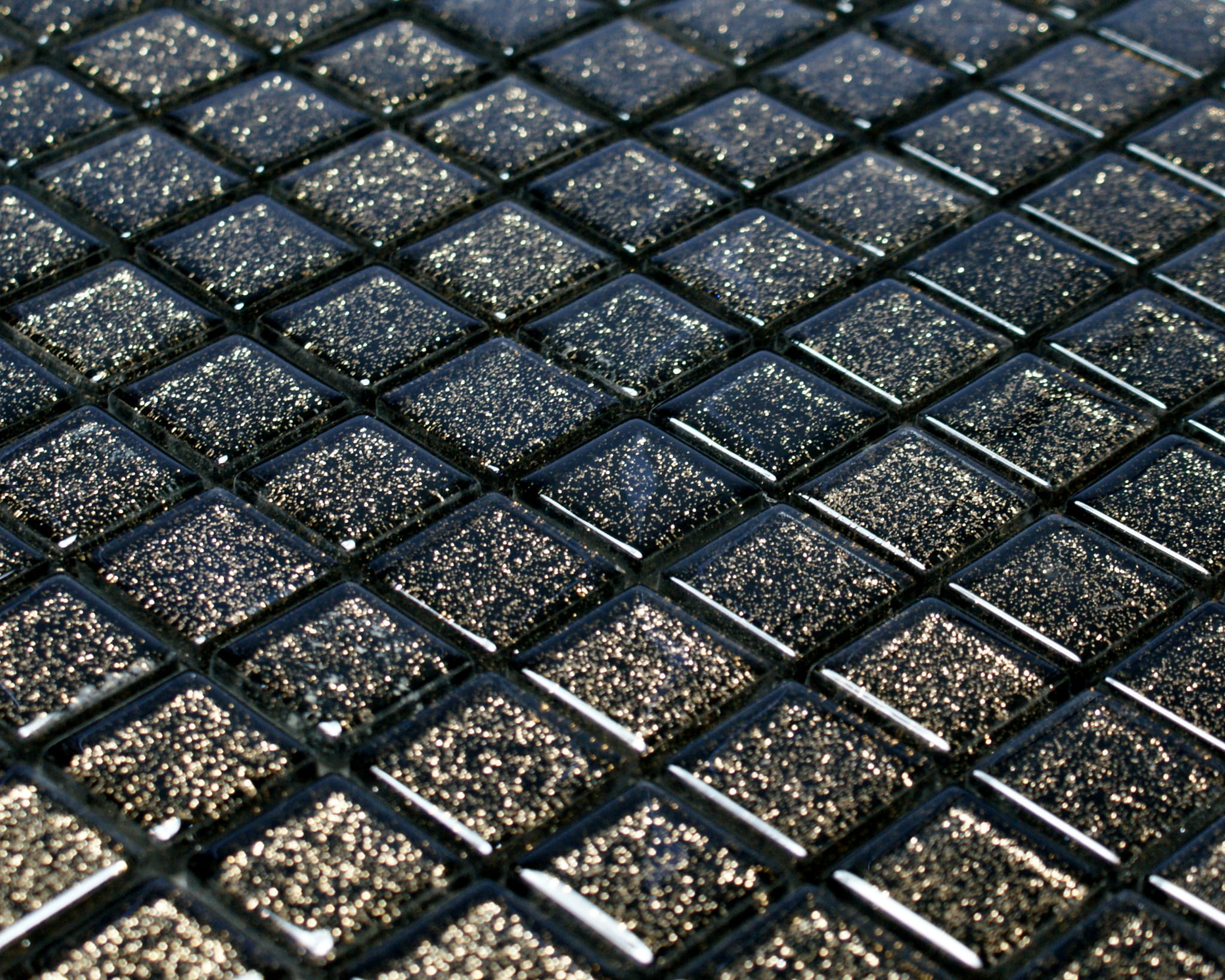 Mozaika szklana w kolorze głębokiej czerni z delikatnie mieniącym miedzianym brokatem