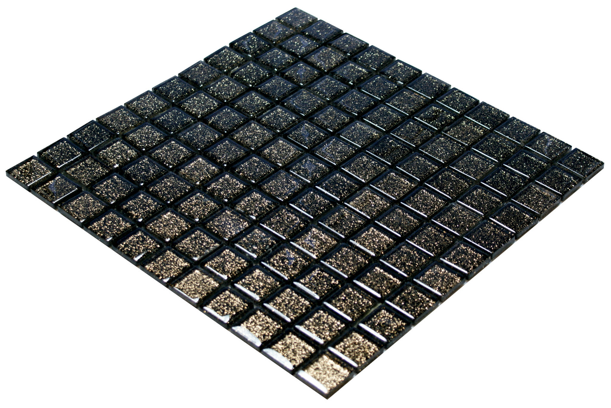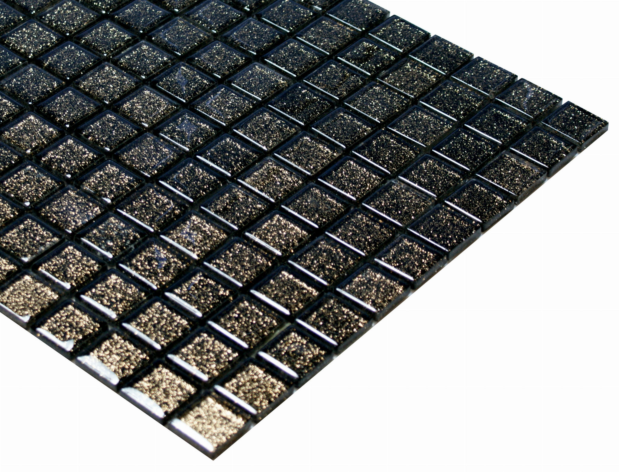 Mozaika szklana czarna z delikatnie mieniącym miedzianym brokatem