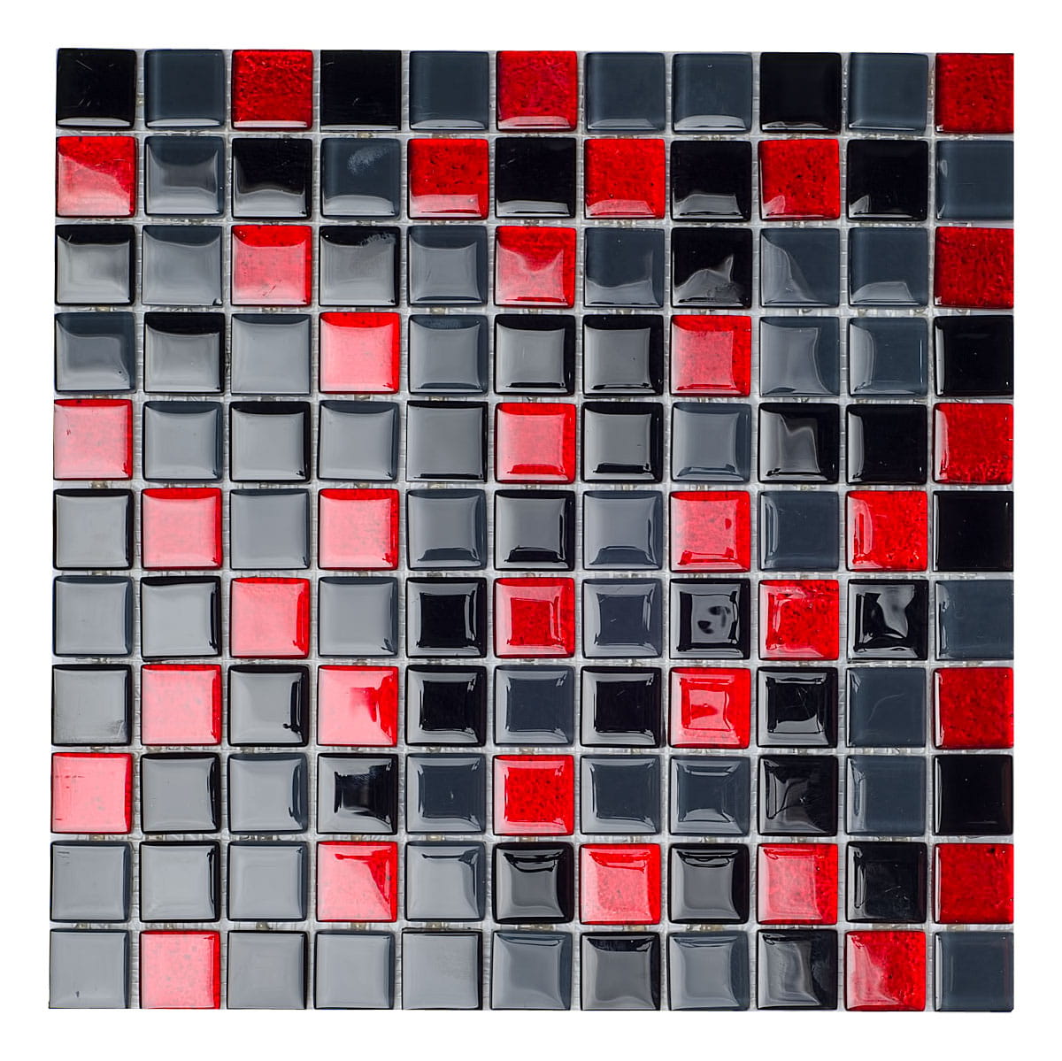 Mozaika szklana w odcieniach szarości i intensywnej czerwieni