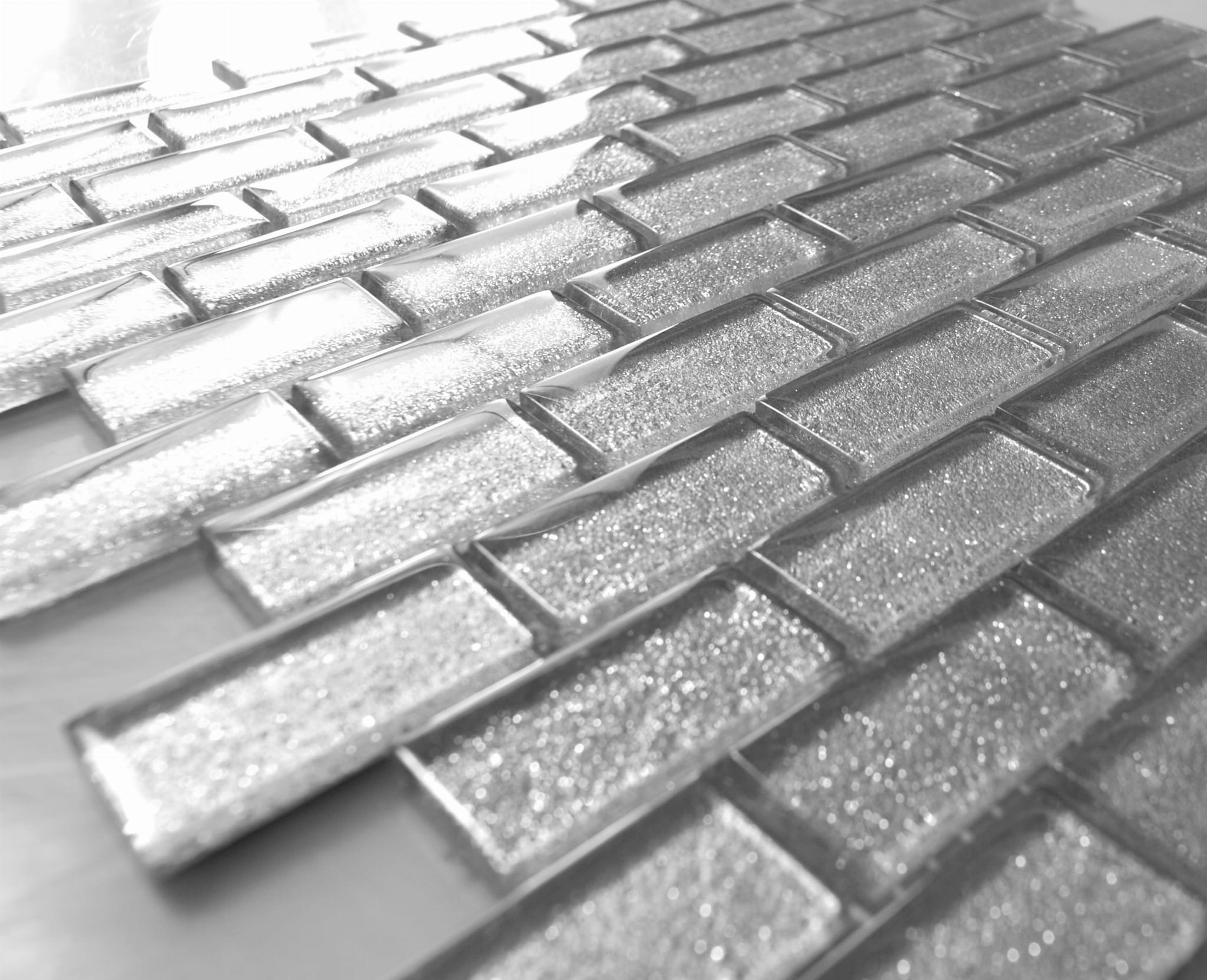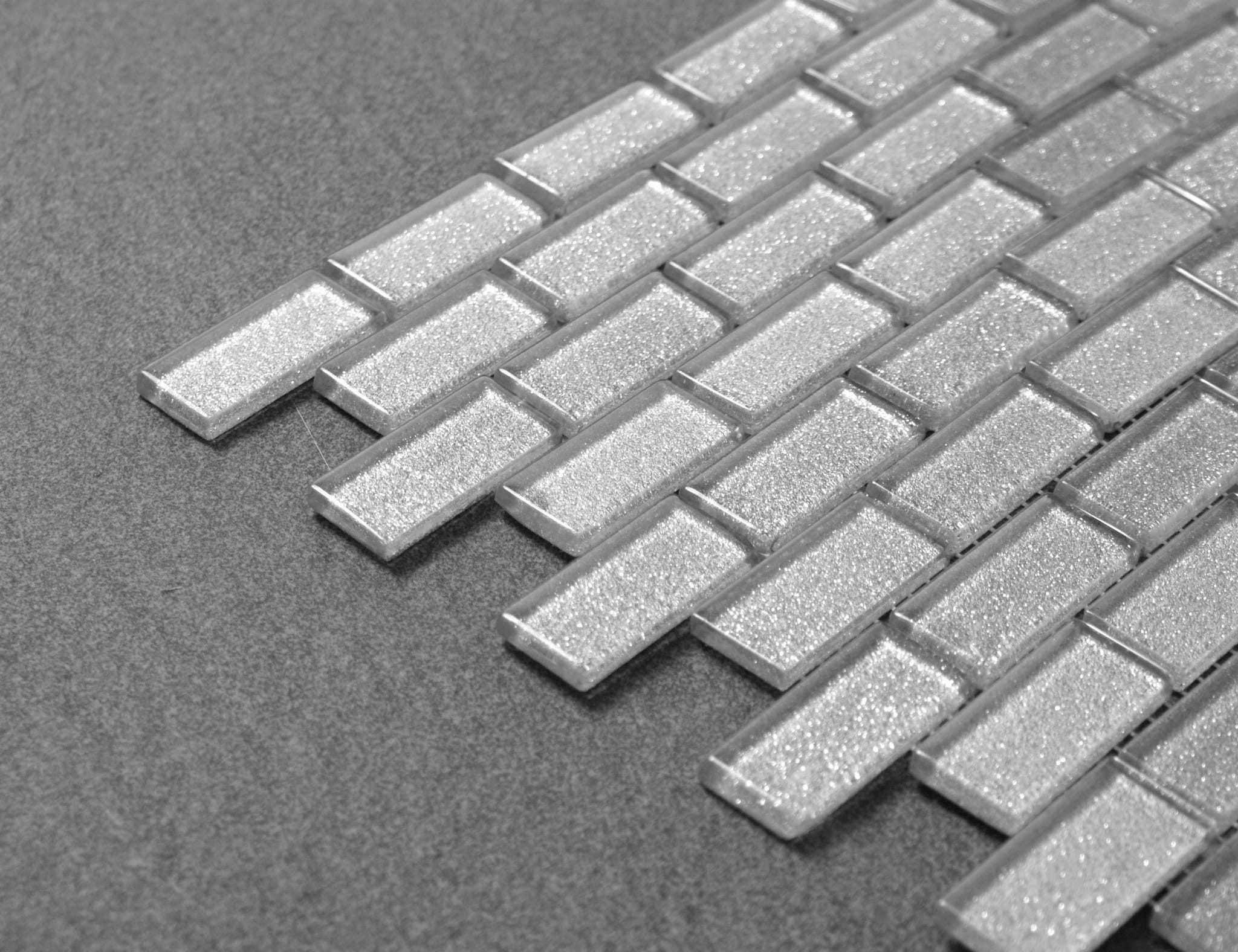 Mozaika w kolorze metalicznego srebra z drobinkami delikatnie mieniącego srebrnego brokatu