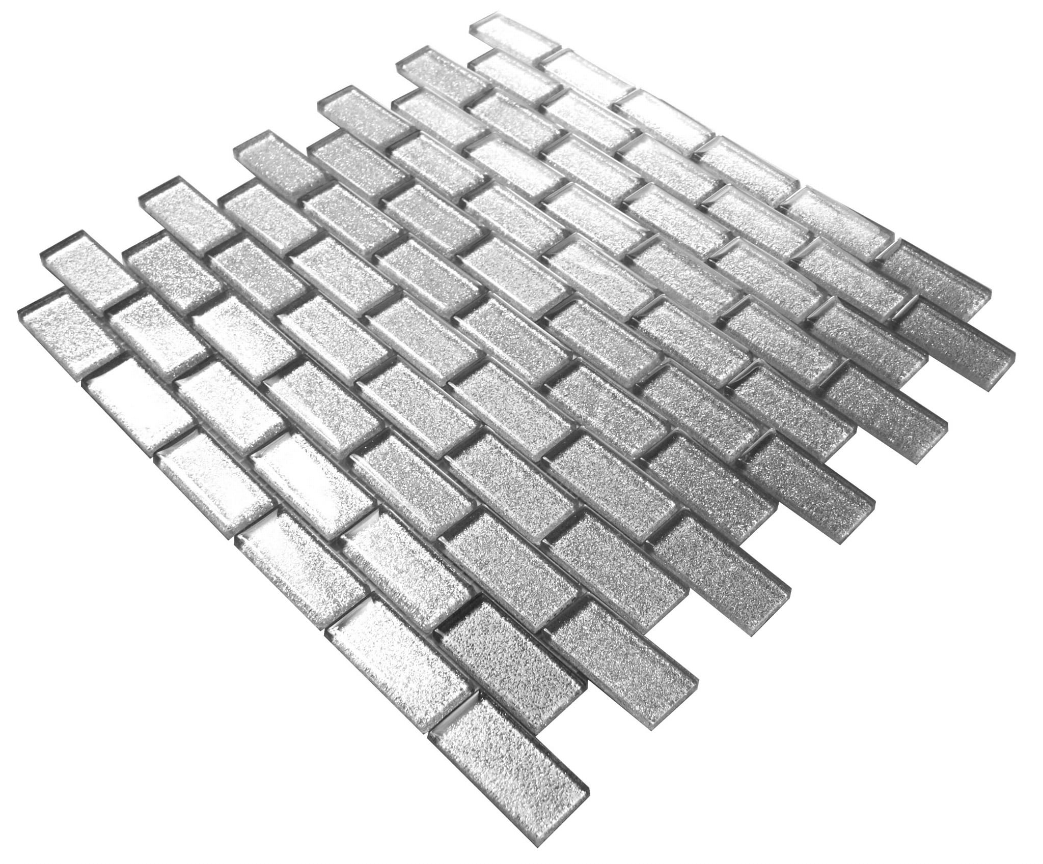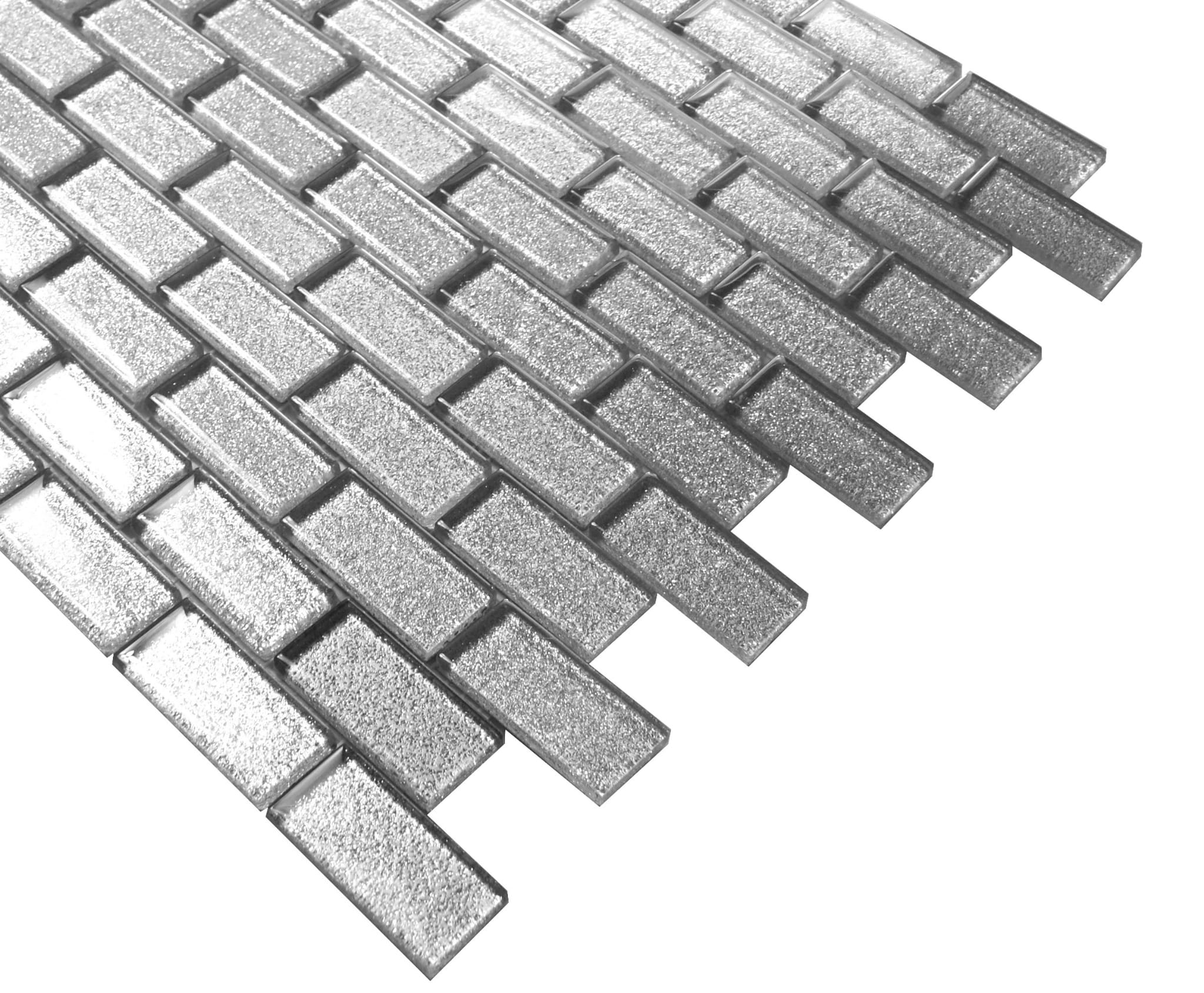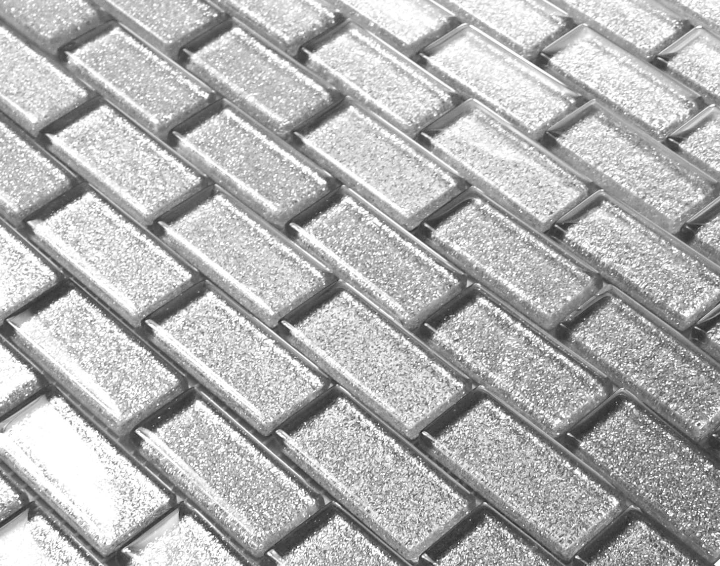 MOZAIKA SZKLANA SREBRNA Z BROKATEM CEGIEŁKA