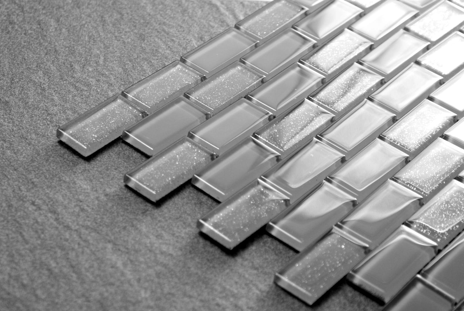 Mozaika w kolorze delikatnej szarości z dodatkiem delikatnie połyskującego srebrnego brokatu
