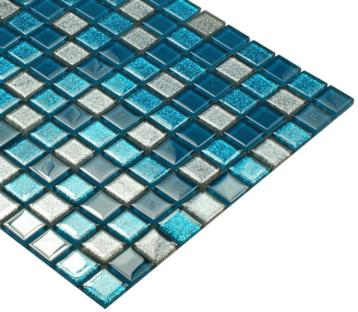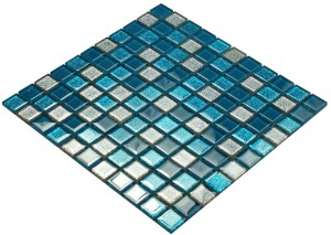 Mozaika szklana w odcieniach turkusu z elementami metalicznej brokatowej szarości