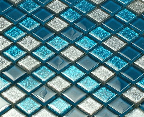 Mozaika w odcieniach turkusu z dodatkiem delikatnie mieniącego szarego brokatu