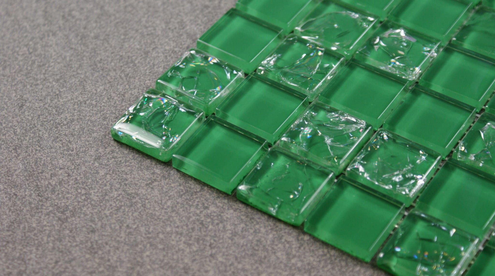 Mozaika w kolorze żywej zieleni w połączeniu z niepowtarzalnym efektem popękanego szkła