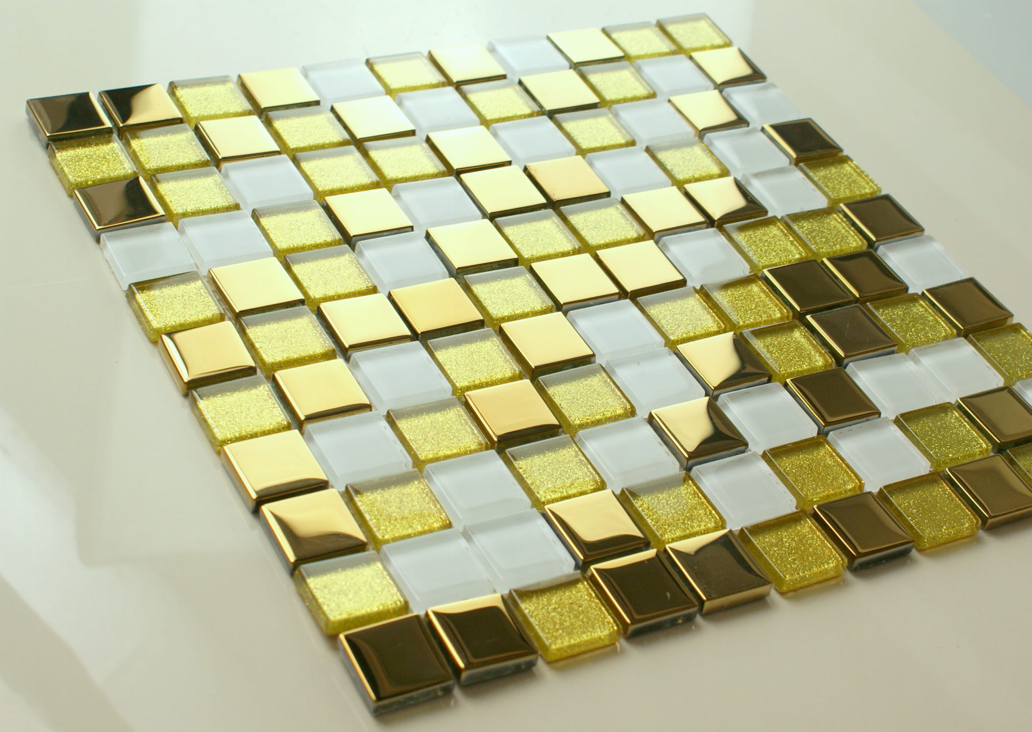 Mozaika w kolorze intensywnego metalicznego złota w połączeniu z szampańskim niezwykle mieniącym brokatem