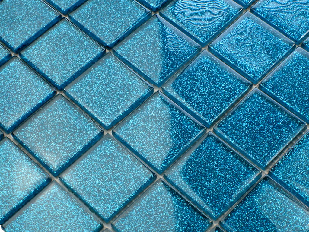 Mozaika w kolorze ciemnego turkusu z mieniącym brokatem