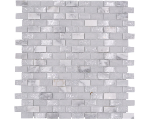 Mozaika szklana, cegła z efektem ice biała