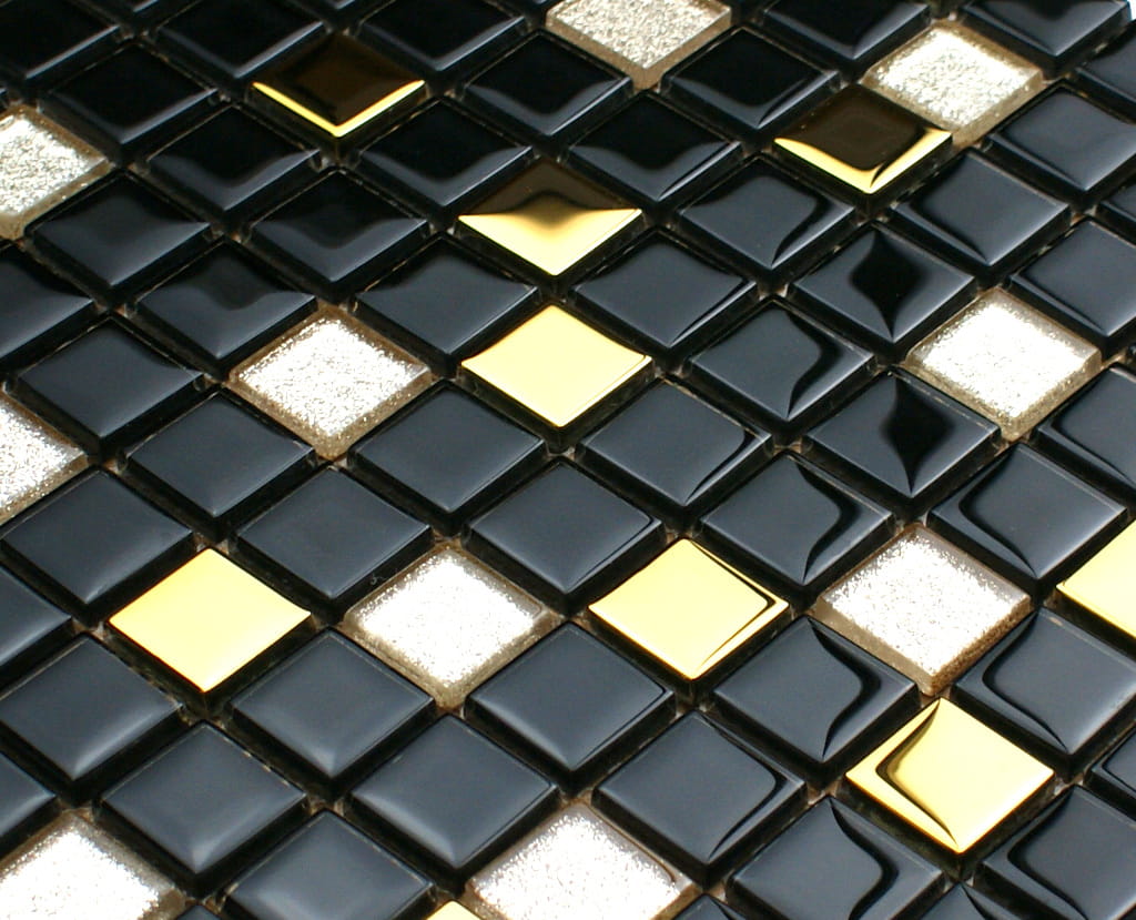 Mozaika szklana czarna złota AUREOL płytka szklana