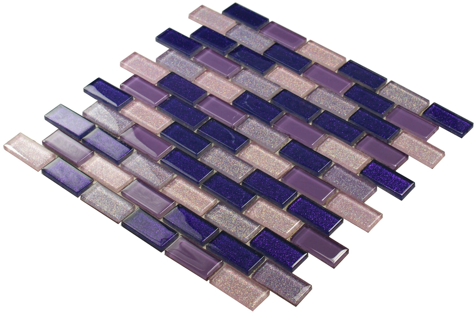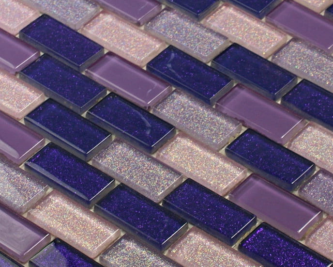 Mozaika w kolorach fioletu i wrzosu z mieniącym brokatem w formie cegły