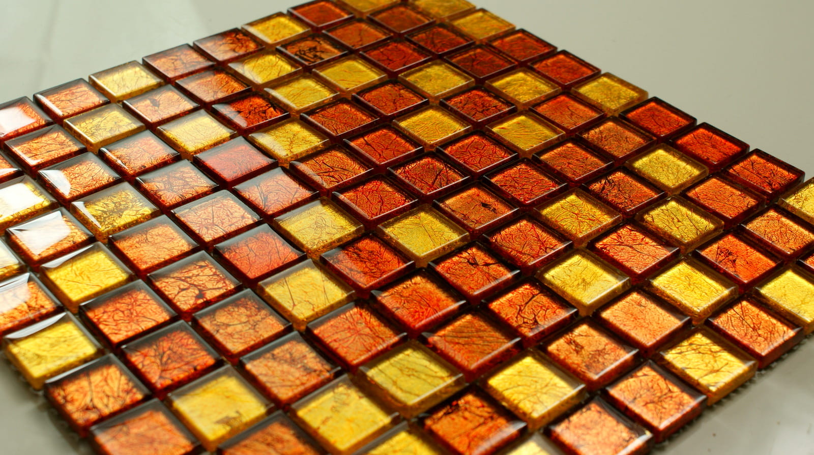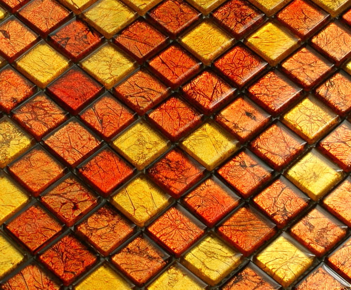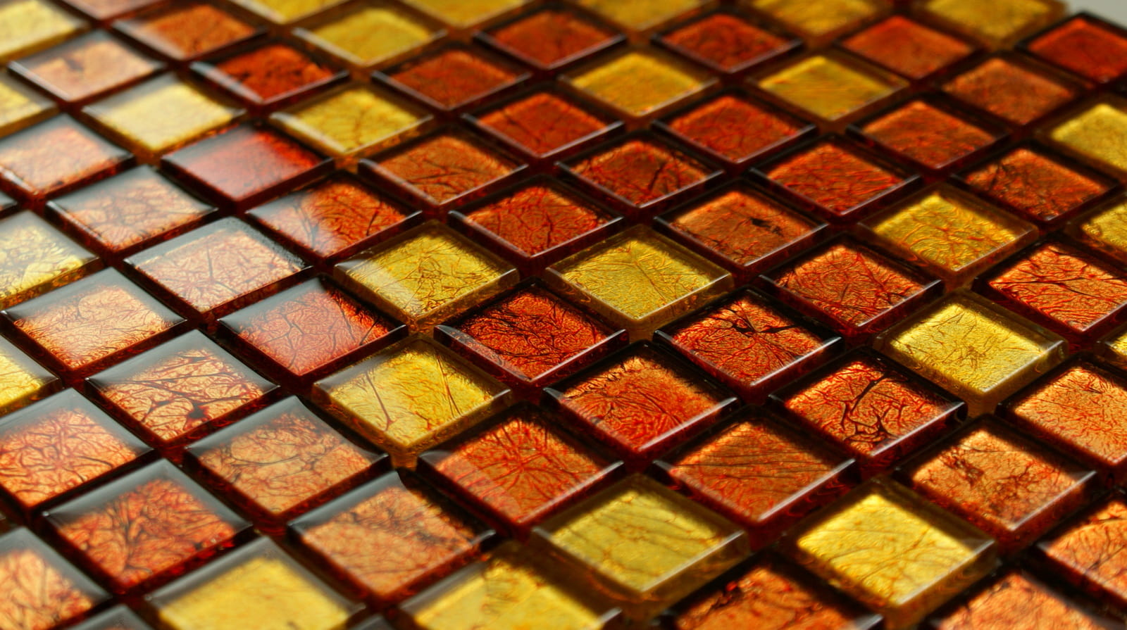 Mozaika szklana w ciepłych odcieniach miedzi i złota