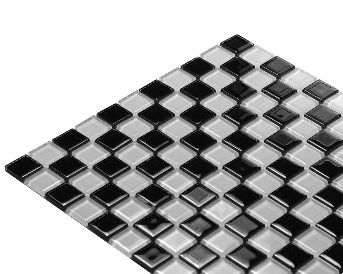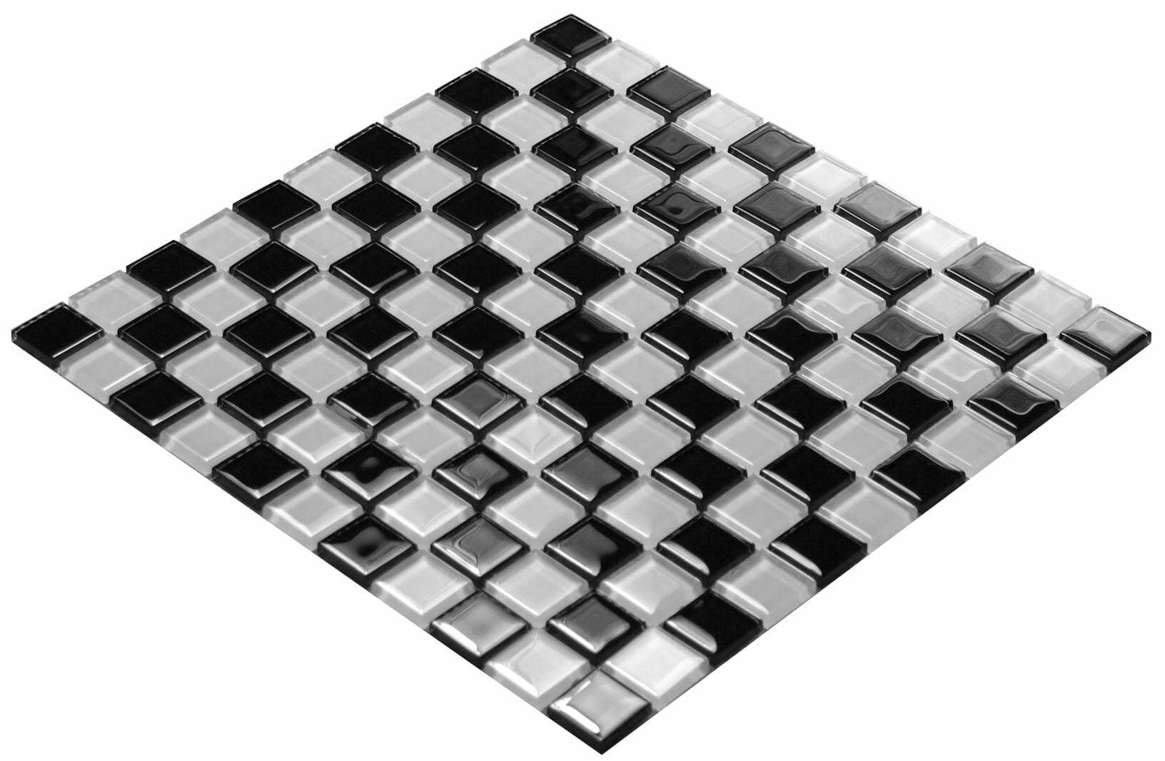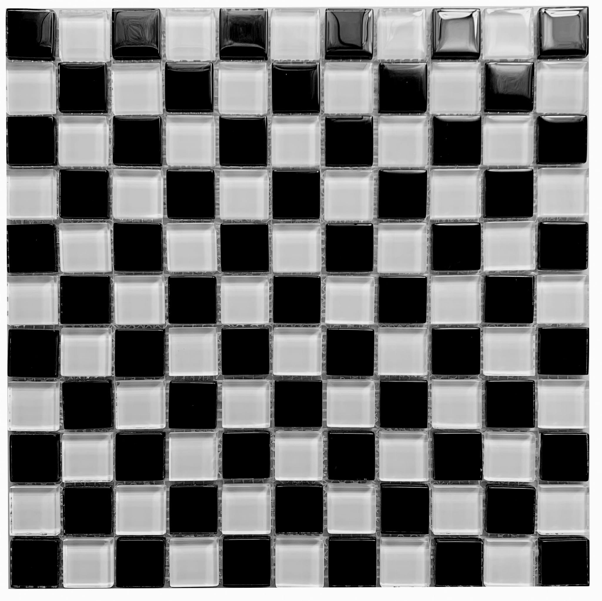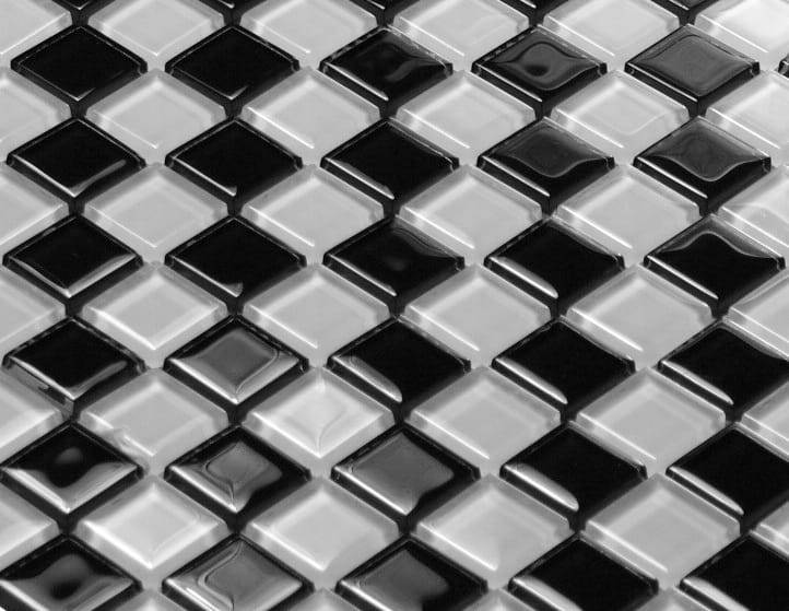 Płytka ścienna czarno biała, mozaika szklana wzorowana na szachownicy