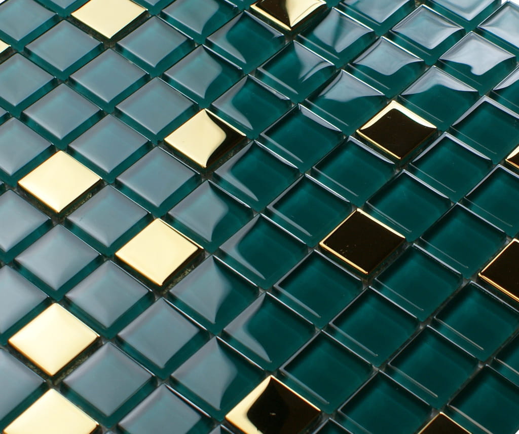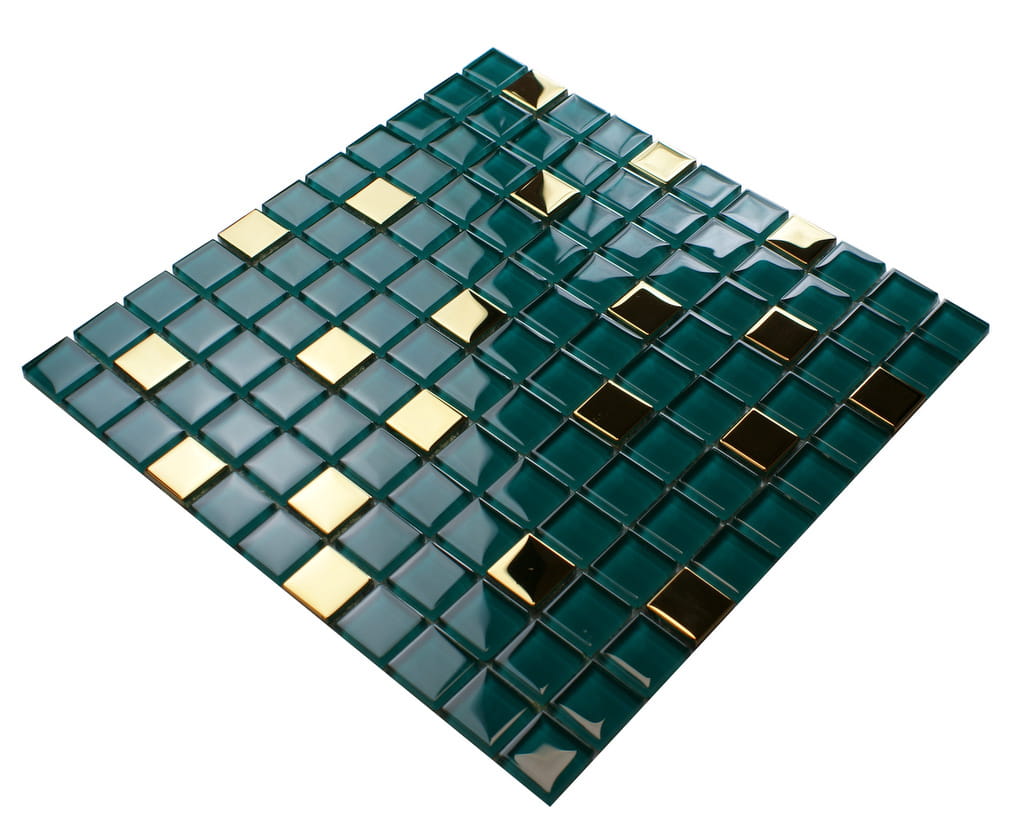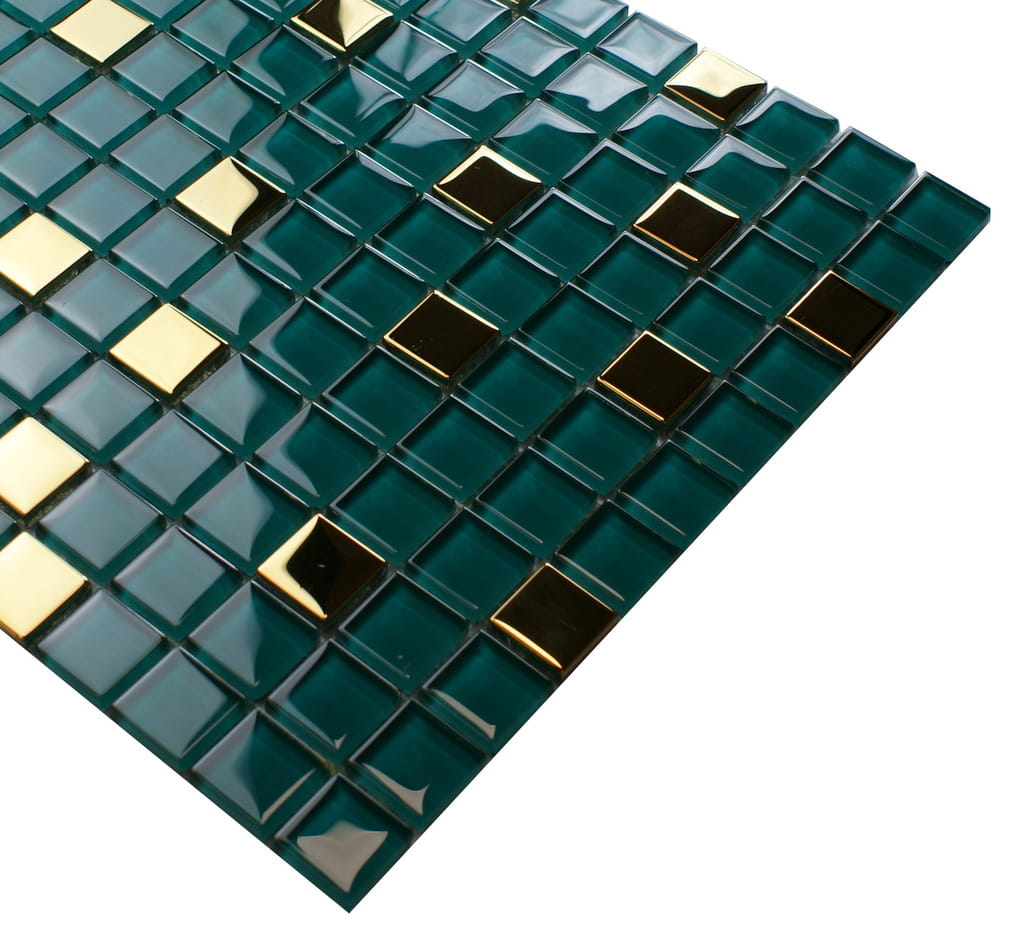 Mozaika szklana w kolorze ciemnej zieleni i błyszczącego złota