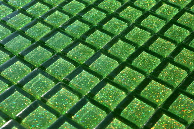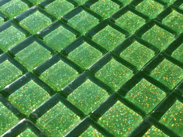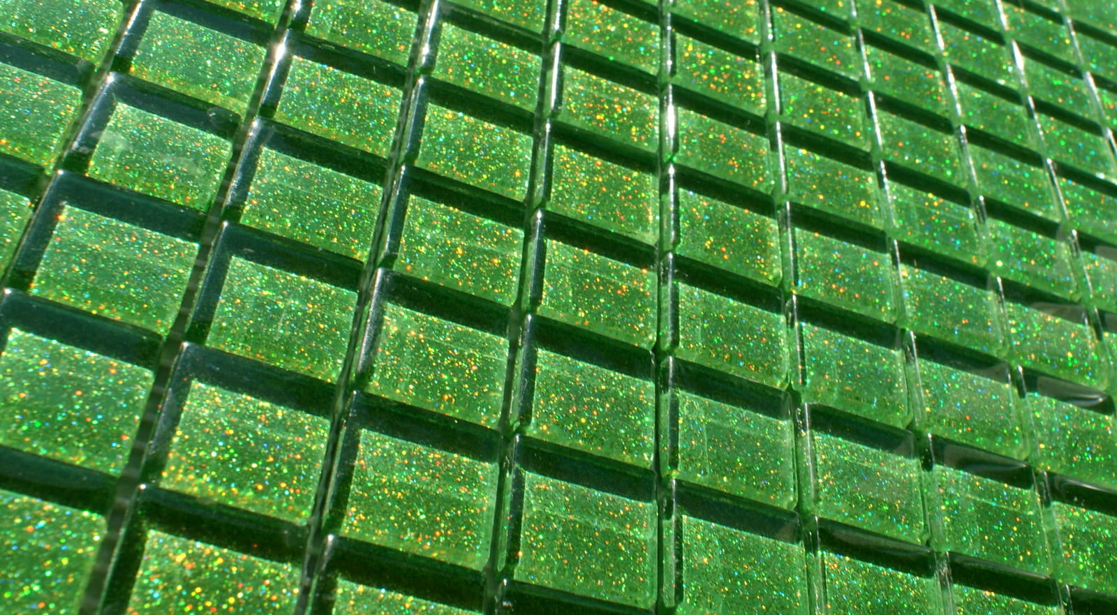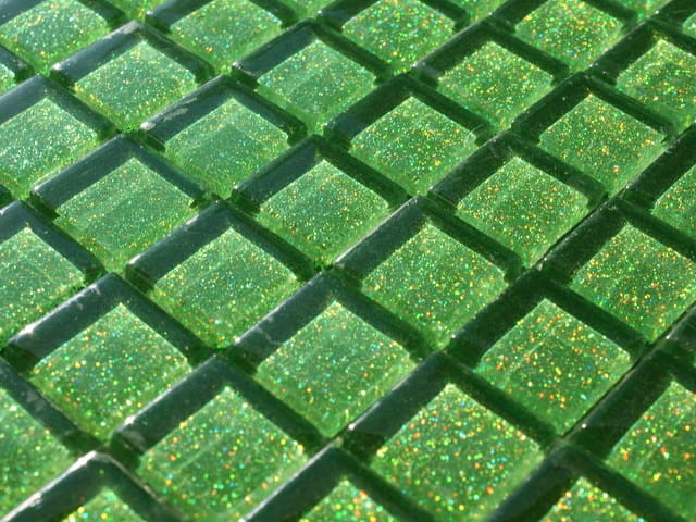 Mozaika szklana zielona z delikatnym hologramowym brokatem