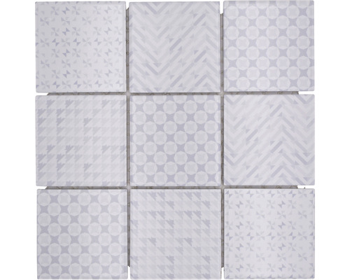 Mozaika ceramiczna biała ze wzorem i kostkami 10x10cm