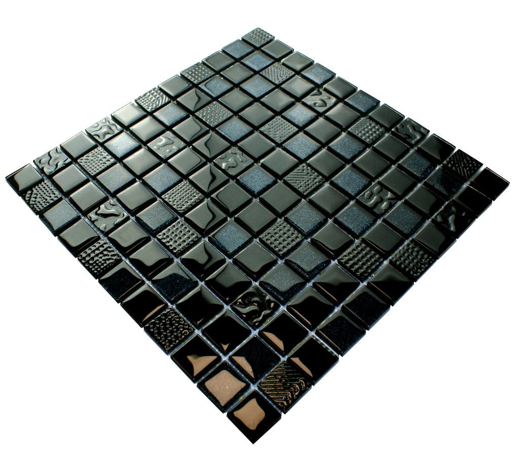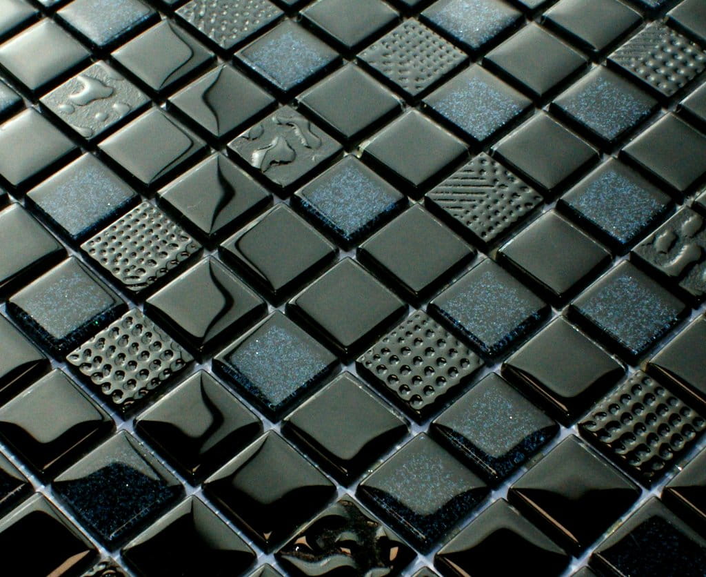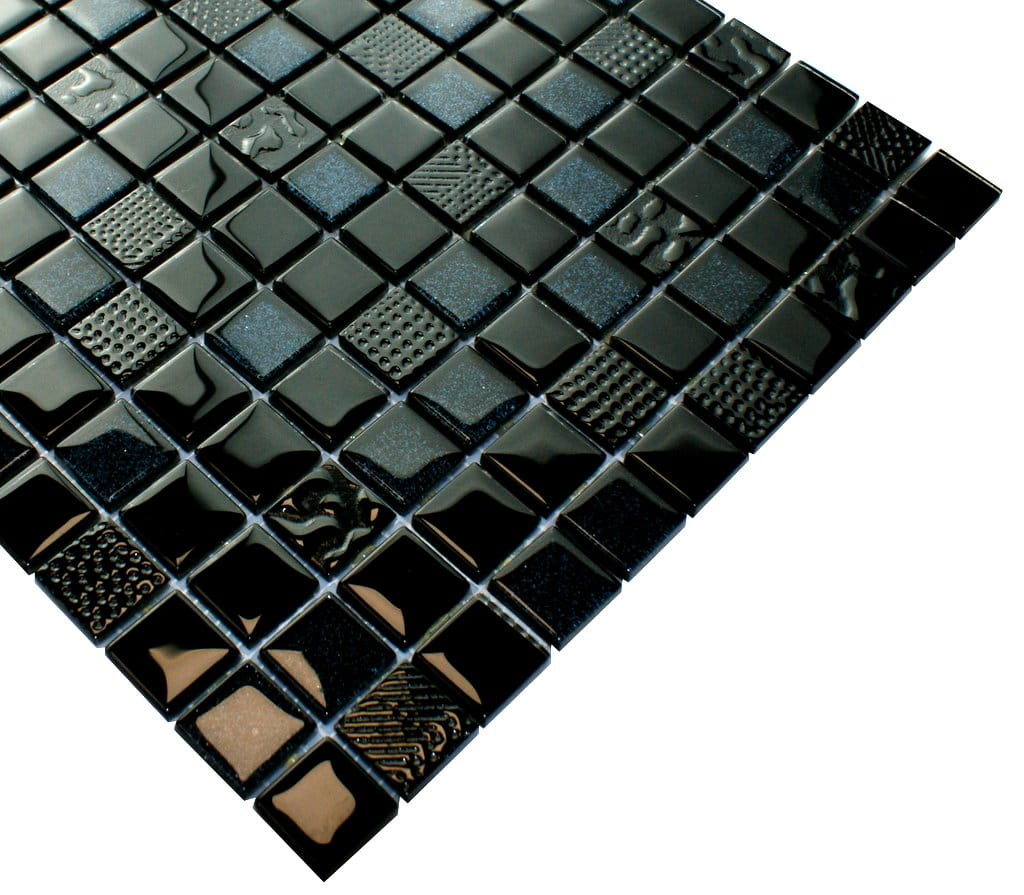 Mozaika szklana w kolorze głębokiej czerni z elementami grafitowego mieniącego brokatu