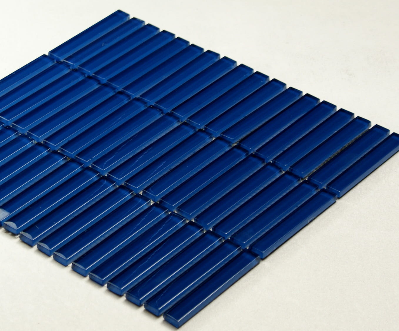 Płytki na ścianę w kolorze ciemnego granatu, kobaltu w nowoczesnej prostej formie.