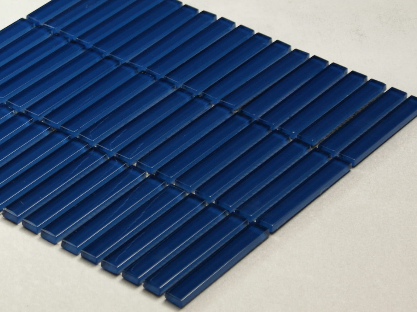 Płytki mozaikowe w kolorze ciemnego granatu. Połączenie ponadczasowej prostej formy z najmodniejszym w sezonie kolorem.