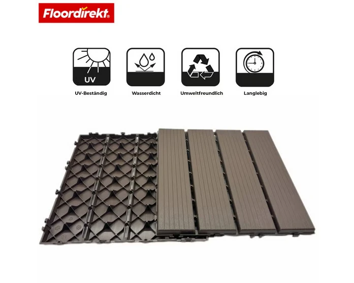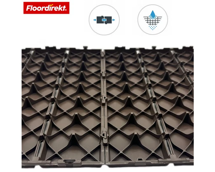 Podest ogrodowy — wykonany z tworzywa sztucznego kolor brązowy, przeznaczony na zewnątrz jako płytka podłogowa. Idealny na taras, balkon i do ogrodu. Opakowanie: 1 sztuka. Trwały, odporny na warunki atmosferyczne, łatwy montaż.