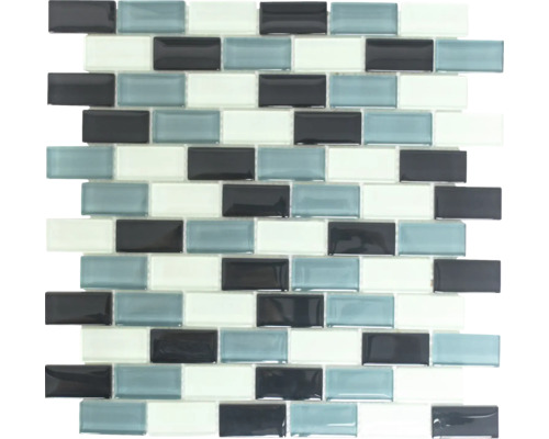 mozaika szklana, cegła szklana mix niebieska