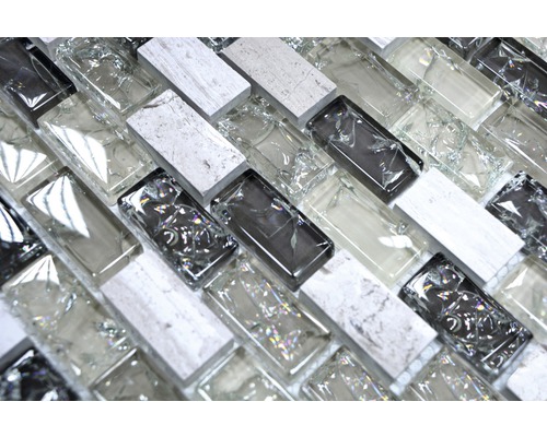 mozaika szklana, płytka szklana cegiełka mix szara